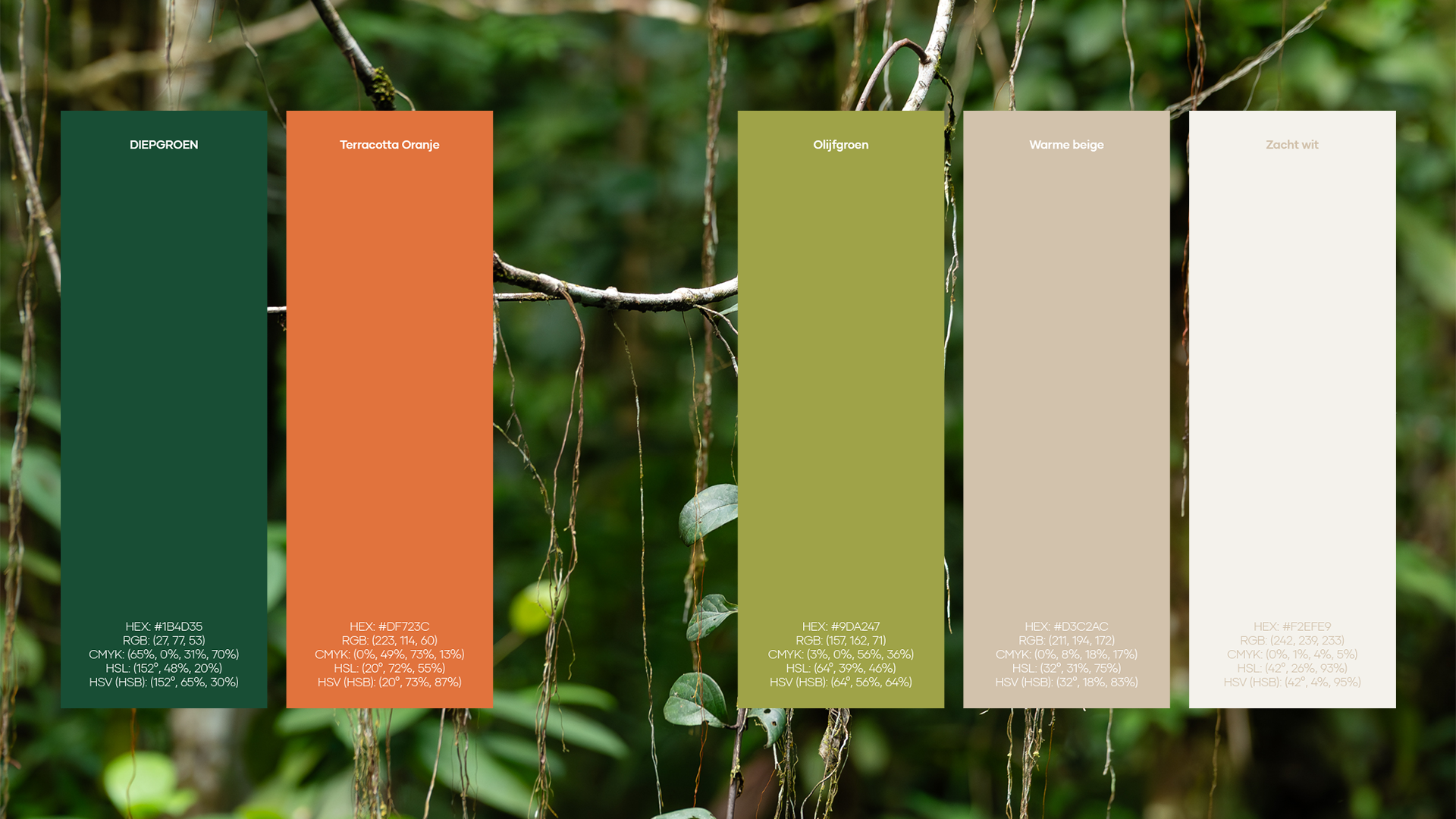 A color palette rooted in nature: deep green, terracotta orange, and warm beige